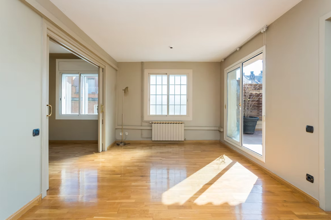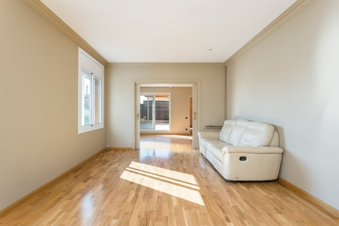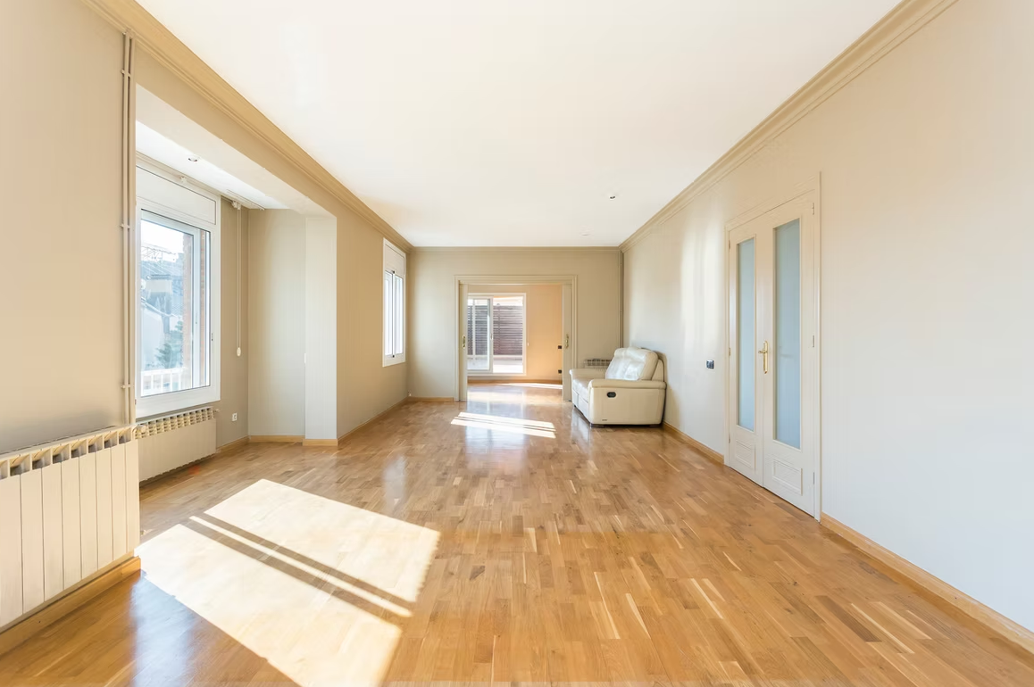 While the current layout presents a comfortable living style, the apartment holds potential for a layout change which has been contemplated by a renowned Barelona architecture studio. This transformation would create a wonderful open-plan kitchen at the front of the apartment and two well-sized bedrooms. Further details about this project are available.